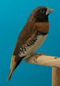 Kastanjebruin De buitenvlaggen van de vleugelpennen zijn kastanjebruin van kleur, maar door de donkerbruine binnenvlaggen is dit veerveld wat donkerder kastanjebruin van kleur |