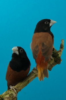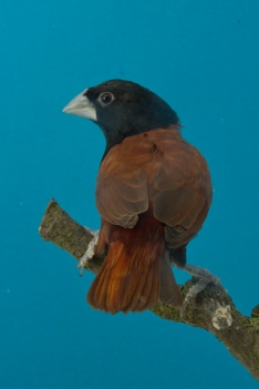 De afscheiding van de zwarte borst met de helder kastanjebruine buik en flanken, verloopt via een regelmatige en diep gebogen lijn van vleugelbocht naar vleugelbocht. Ter hoogte van de pootinplant gaat de buikkleur over in het onderstaartdek. |